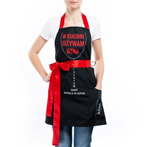 Gotowy do wręczenia na prezent bez konieczności dodatkowego pakowania. Napis na produkcie: W kuchni używam wina, czasem nawet dodaję je do potraw. Produkt w polskiej wersji językowej.