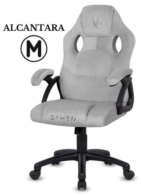 Fotel obrotowy, dla gracza, do biurka - CARRERA GREY ALCANTARA rozmiar M