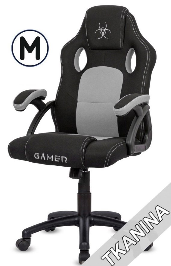 Fotel obrotowy, dla gracza, krzesło do biurka - CARRERA M GREY FABRIC