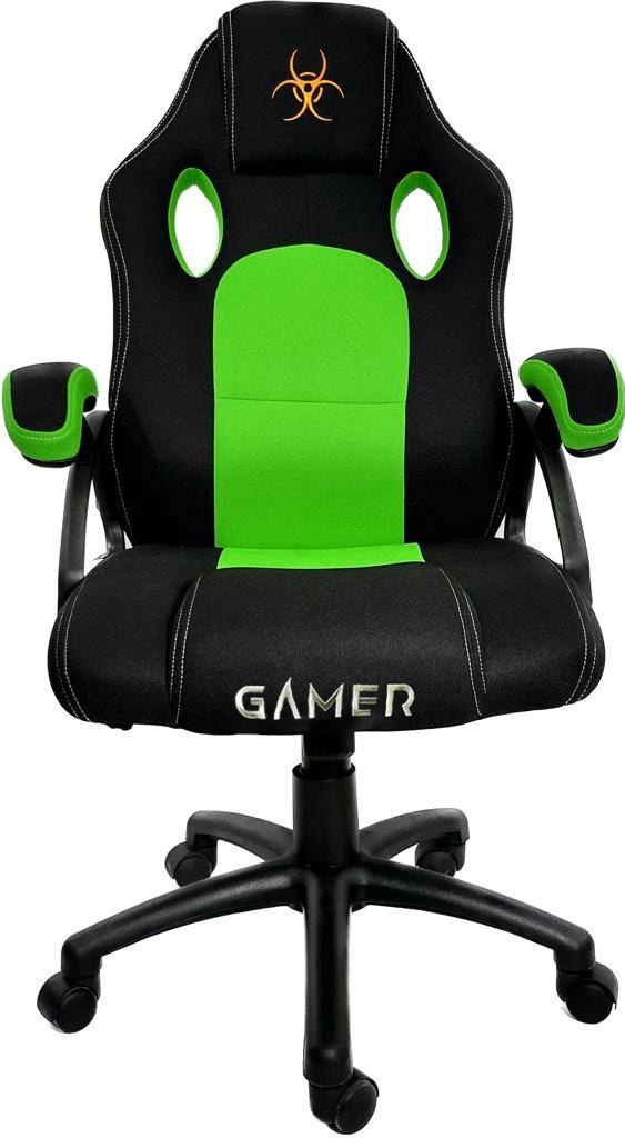 Fotel obrotowy do biurka, biura, dla gracza model CARRERA rozmiar M, tapicerowany w całości tkaniną, marki Lugano. Ergonomicznie wyprofilowane oparcie.