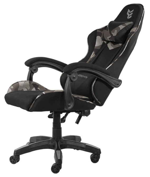Fotel obrotowy, gamingowy marki Prototype z odchylanym oparciem, blokadą MPS i niezależną funkcją regulacji wysokości oparcia. Tapicerowany wytrzymałą tkaniną. Kolor czarny - moro piaskowy kamuflaż