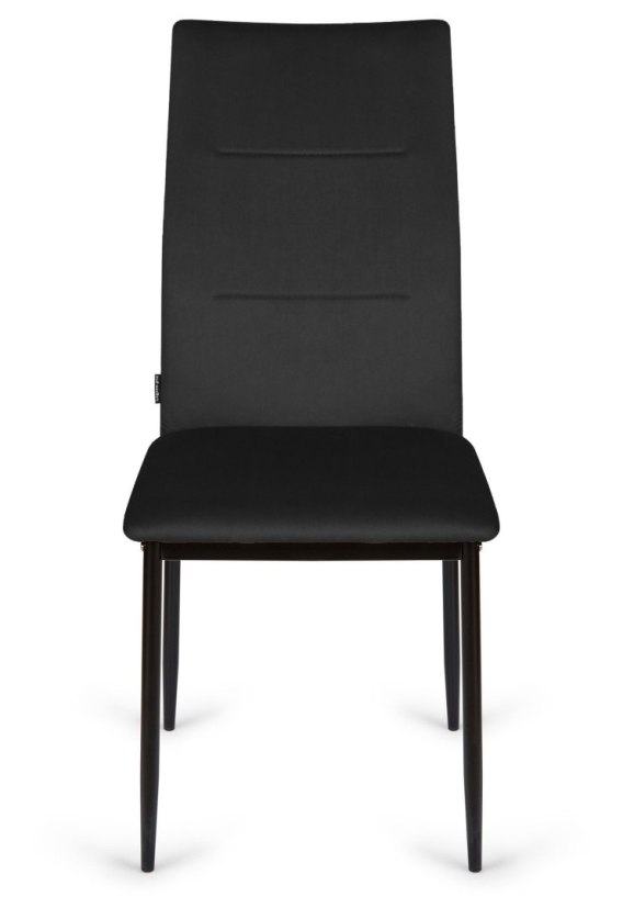 Nowoczesne, solidne i wygodne krzesło do salonu, kuchni, jadalni. Tapicerowane tkaniną welur w kolorze czarnym. Czarne metalowe nogi.
