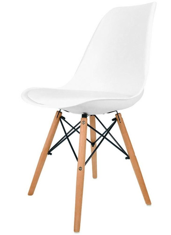 TOSCANA - Nowoczesne krzesło w stylu skandynawskim, kolor biały z poduszką tapicerowaną skórą ekologiczną.