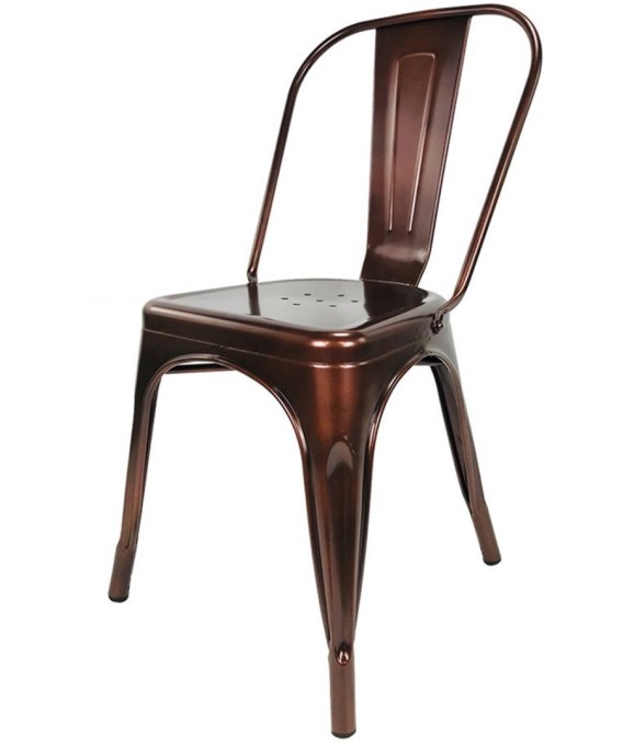 Nowoczesne krzesło metalowe w kolorze miedzianym, Loft Paris inspirowane Tolix. Idealne do codziennego użytku wenątrz i na zewnątrz.