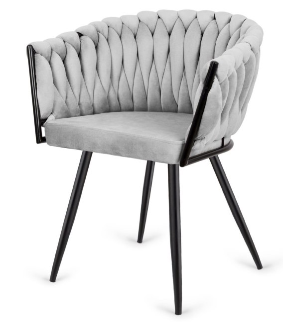 TRECCIA GREY VELVET SMOKE - Stylowe krzesło tapicerowane welurem w kolorze szarym, z unikatowym splotem .