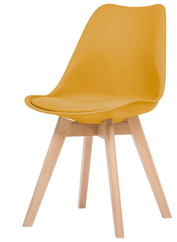 Nowoczesne krzesło w stylu skandynawskim w kolorze miodowym, z miękką poduszką siedziska, idealne do jadalni, salonu, kuchni.