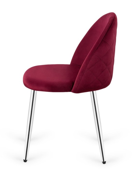 GLORIA WINE VELVET SILVER - Nowoczesne krzesło tapicerowane w kolorze bordowym, z unikatowym wzorem na oparciu i srebrnych nogach.