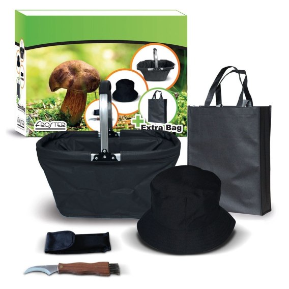 Aby ułatwić zbieranie grzybów, znajduje się w nim praktyczny nożyk wykonany ze stali nierdzewnej z pędzelkiem do ich czyszczenia. Ponieważ grzyby lubią przewiewne pojemniki, jest też składany kosz, który bez problemu przechowasz. Dwustronna czapka ochroni Cię przed kleszczami, a jeśli grzybobranie będzie wyjątkowo udane, będziesz miał ze sobą dużą torbę, którą możesz wykorzystać także w innych celach.
